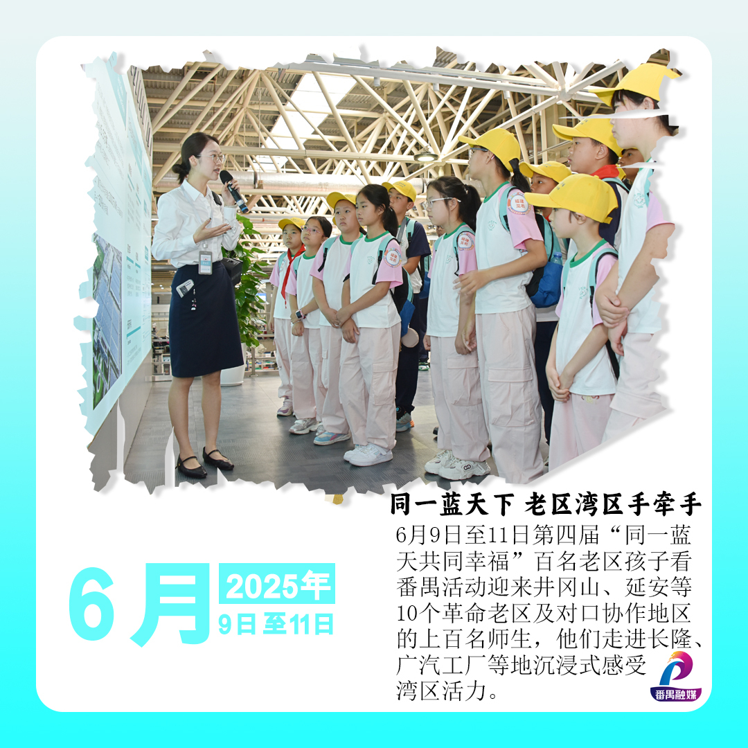6月9日至11日,第四届“同一蓝天 共同幸福”百名老区孩子看番禺活动迎来井冈山、延安等10个革命老区及对口协作地区的上百名师生,他们走进长隆、广汽埃安工厂等地沉浸式感受湾区活力;
