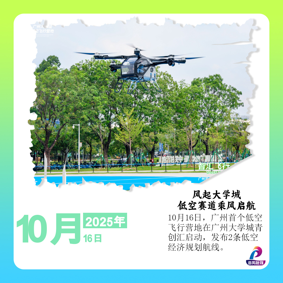 10月16日,广州首个低空飞行营地在广州大学城青创汇启动,发布2条低空经济规划航线;