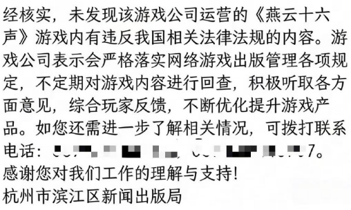 近日口碑最好的配资平台,游戏《燕云十六声》上线新时装引发网友争议并登上热搜。据南方+记者最新获悉,已经有网友反映收到杭州市滨江区新闻出版局对于游戏《燕云十六声》新时装举报信息的回复,表示“未发现该游戏公司运营的《燕云十六声》游戏内有违反我国相关法律法规的内容”。