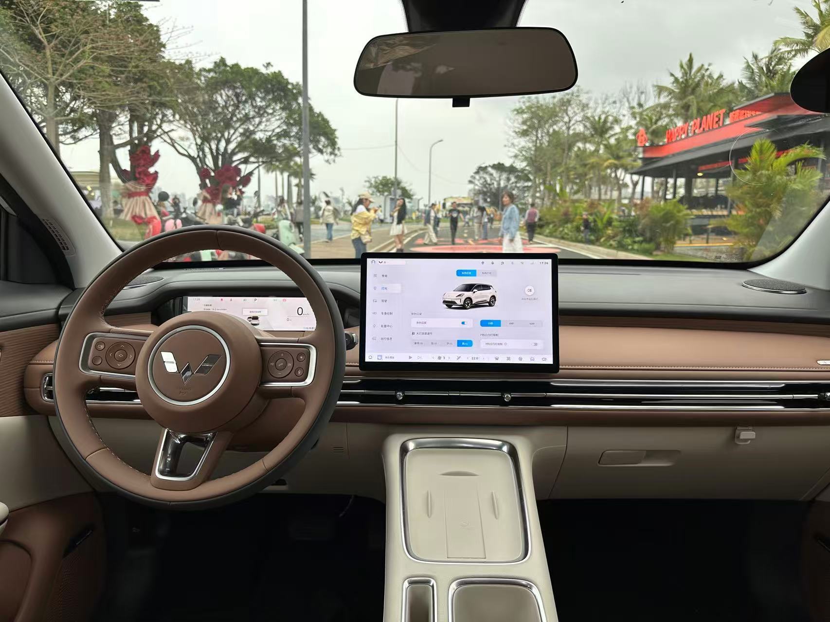 打开车门,看内饰。内饰材质采用3D⽇内⽡⽊纹⼯艺,灵感源自瑞士日内瓦钟表工艺,触感温润自然。
